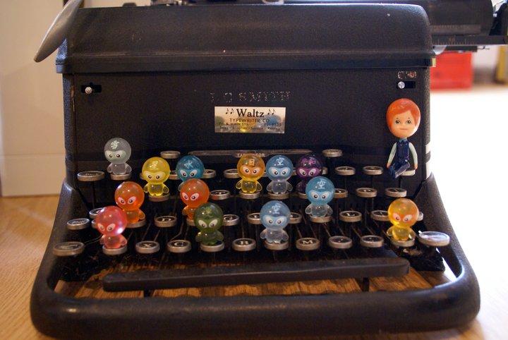 We currently own 7 old manual-style typewriters dating from around 1913 through the 1950s. They are all complete, but not in working condition. We had intended to take them apart and use their pieces, but something in our hearts dies at the thought of all the old typewriters in the world being scavenged. So they sit in our workshop being adored by us, but serving no purpose.